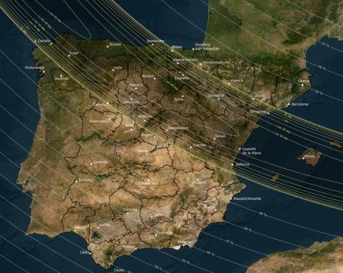El eclipse del 12 de agosto de 2026 tendrá una trayectoria singular. La franja de totalidad cruzará España de oeste a este, pasando por numerosas capitales de provincia en un arco que va desde A Coruña hasta Palma de Mallorca. Debido a la ubicación de España al final de la franja global, el fenómeno ocurrirá cuando el Sol esté muy bajo, cerca del horizonte, lo que regalará estampas fotográficas únicas de la corona solar durante el atardecer.