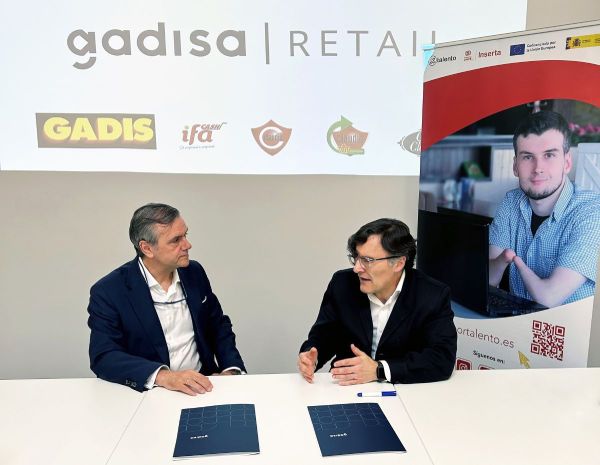 El vicepresidente ejecutivo de Fundación ONCE, Alberto Durán, y el presidente y consejero delegado de Gadisa Retail, Roberto Tojeiro, han firmado un Convenio Inserta para promover la contratación de al menos 15 personas con discapacidad en la empresa de distribución alimentaria en un plazo de tres años.