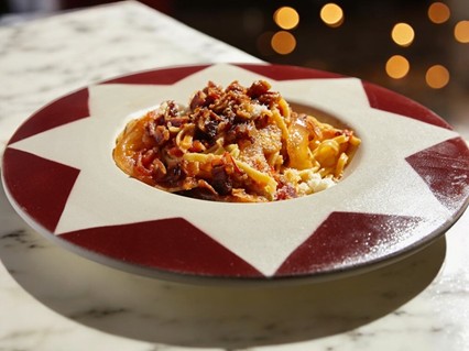 Pero sin duda, el plato que más destaca es el Friggione Emiliano Spicy. Esta pasta fina y larga, se sirve con una salsa casera a base de tomate, pimientos braseados, pancetta romana ahumada, crema de Parmigiano Reggiano DOP curado 24 meses y Pecorino Romano, entre otros ingredientes.