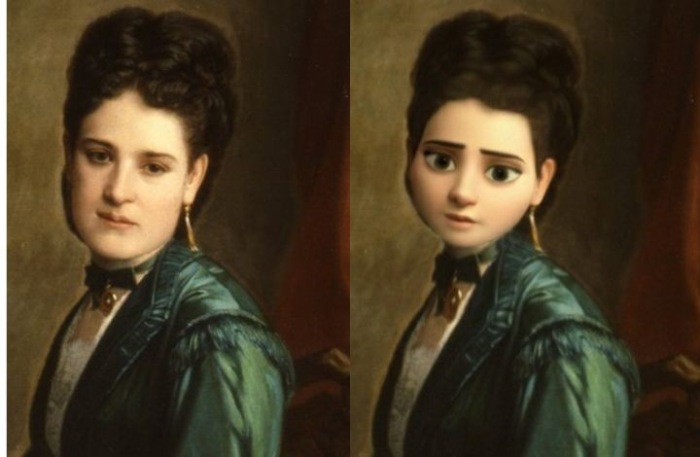 Para ello, PixarizArte se vale de la tecnología de reconocimiento facial y filtros similares a los de aplicaciones como Snapchat. Al correr la cortinilla digital que cubre cada lienzo original, el usuario se encuentra con una versión alterada que dulcifica los rasgos. Incluso los rostros más adustos de la historia de España, al ser pasados por este tamiz digital, adquieren ojos inmensos, narices poderosas pero simpáticas y sonrisas tímidas. Es una estrategia que nos hace sentir más indulgentes y tiernos hacia su recuerdo histórico.