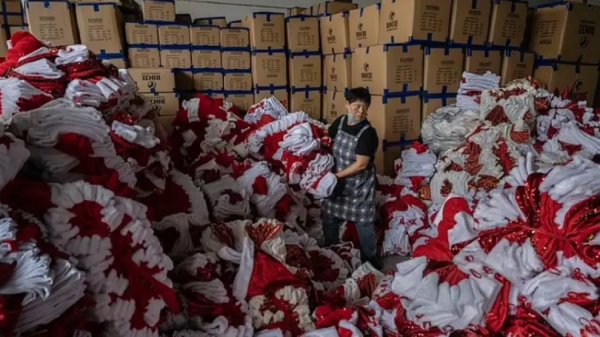 A pesar de la intensidad del trabajo, los salarios mensuales oscilan entre los 150 y los 175 euros, una cifra modesta si se tiene en cuenta que en 2022, solo el comercio navideño de Yiwu generó ventas estimadas en 61.500 millones de euros en productos festivos.