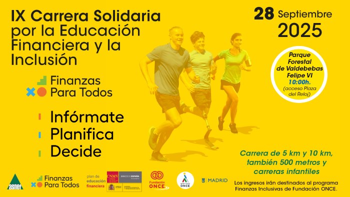 La Fundación ONCE y la Asociación Nacional de Establecimientos Financieros de Crédito (ASNEF) se preparan para un evento de gran envergadura: la IX Carrera Solidaria por la Educación Financiera y la Inclusión. Este encuentro deportivo, que conjuga el esfuerzo físico con la concienciación social, se celebrará el próximo domingo 28 de septiembre en el Parque Forestal de Valdebebas de Madrid. Su objetivo es claro: promover la importancia de la cultura financiera entre los ciudadanos y, al mismo tiempo, recaudar fondos para una causa solidaria.
