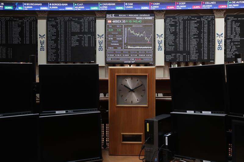 Madrid, 18 may (EFE).- El principal indicador de la Bolsa española, el IBEX 35, se mantiene a mediodía por debajo de los 10.200 puntos tras perder el 0,18 %, una caída con la que pone en riesgo su mejor racha de subidas semanales desde 2013.
