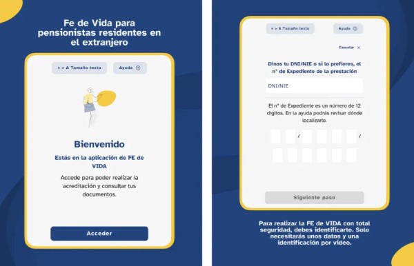 - Descarga y Registro (un solo paso la primera vez): El usuario descarga la app desde Google Play o la App Store. El registro inicial solo se realiza una vez. Se puede acceder con el sistema Cl@ve, con el DNI/NIE español o, muy útil para quienes no tengan Cl@ve, con el número de expediente de su pensión (que figura en la carta anual de revalorización). A continuación, la app solicita una video identificación: el usuario debe mostrar su documento de identidad por ambas caras a la cámara y, finalmente, sonreír.