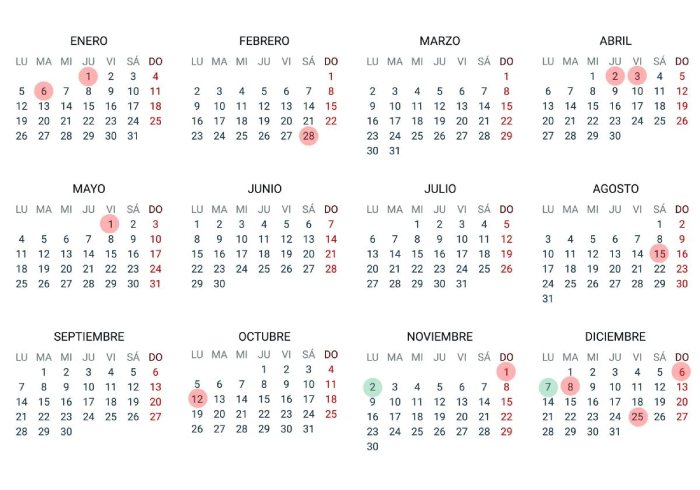 - 7 de diciembre (lunes): Día de la Constitución Española