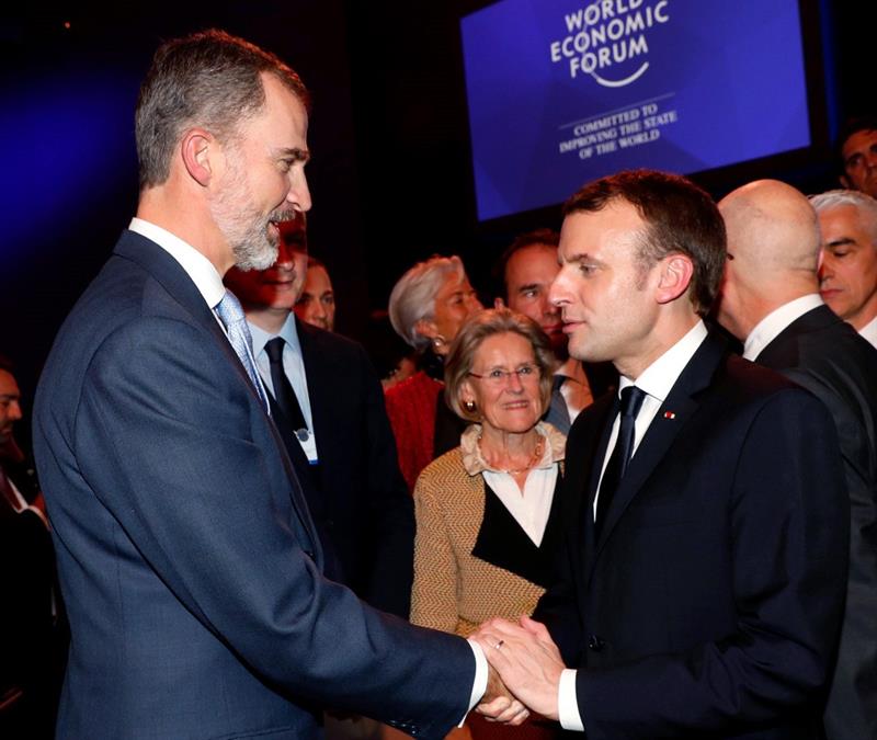 Davos (Suiza), 24 ene (EFE).- El rey Felipe VI completó hoy su participación en el Foro Económico Mundial de Davos tras una breve entrevista con el presidente de Francia, Emmanuel Macron, a quien invitó a visitar oficialmente España en el primer encuentro bilateral que mantienen los dos jefes de Estado.
