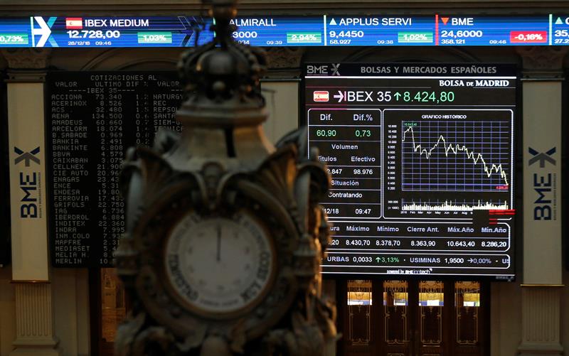 Dentro del IBEX destacaban los repuntes de Ence y ACS, cercanos al 3 %, así como los de los grandes valores; Iberdrola subía un 1,65 %, Inditex, un 1,03 %, Santander, un 0,80 %, Repsol, un 0,39 %, Telefónica, un 0,39 %, y BBVA, un 0,16 %.