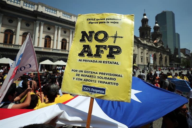 Santiago de Chile, 22 abr (EFE).- Miles de personas se manifestaron este domingo en varias ciudades de Chile contra el sistema privado de pensiones, las primeras movilizaciones de este tipo que se realizan desde que el presidente conservador Sebastián Piñera inició su segundo mandato en el país.
