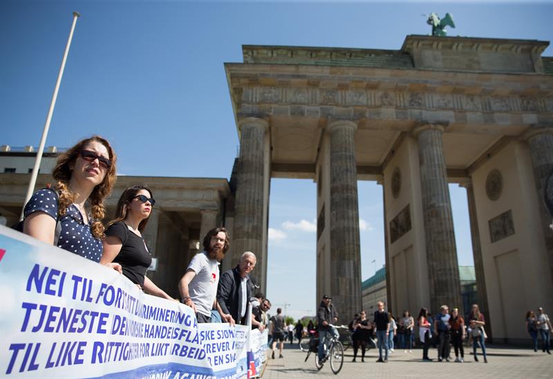 Berlín, 28 abr (EFE).- Representantes de los marineros españoles que exigen a Noruega el pago de sus pensiones tras estar embarcados en la marina mercante de ese país se manifestaron hoy en Berlín en el marco de una gira de movilizaciones por varias capitales europeas que comenzó en Oslo en diciembre pasado para publicitar su causa.