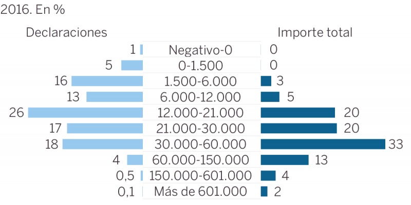La afirmación de Rivera no se ajusta del todo a lo que recoge el programa de la formación liderada por Pablo Iglesias. De hecho, aquellos contribuyentes que respecto al IRPF declaran una renta superior a los 60.000 euros apenas representan un porcentaje por debajo del 4% del total de contribuyentes, según los datos hechos públicos por la Agencia Tributaria.