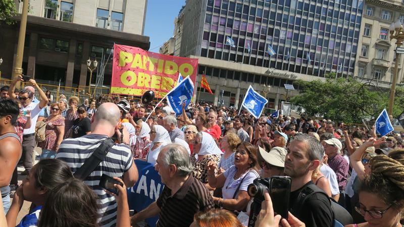 Hacia el mediodía (15.00 GMT), los manifestantes comenzaron a congregarse en el cruce de la Avenida de Mayo y la 9 de julio -las dos más emblemáticas de la ciudad- para marchar hacia Plaza de Mayo, frente a la sede del Gobierno, donde se desarrolla el acto central.