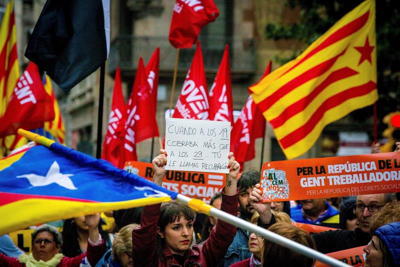 También han reclamado la libertad de los políticos y líderes independentistas presos y han criticado la precariedad laboral, los recortes en educación, el paro, las pensiones "irrisorias" y las elevadas tasas universitarias.