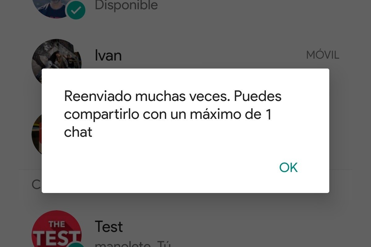 Para evitar esto, los mensajes que ya hayan pasado por cinco teléfonos, esos que ya están identificados con el icono de la doble flecha, solo podrán ser reenviados una vez.